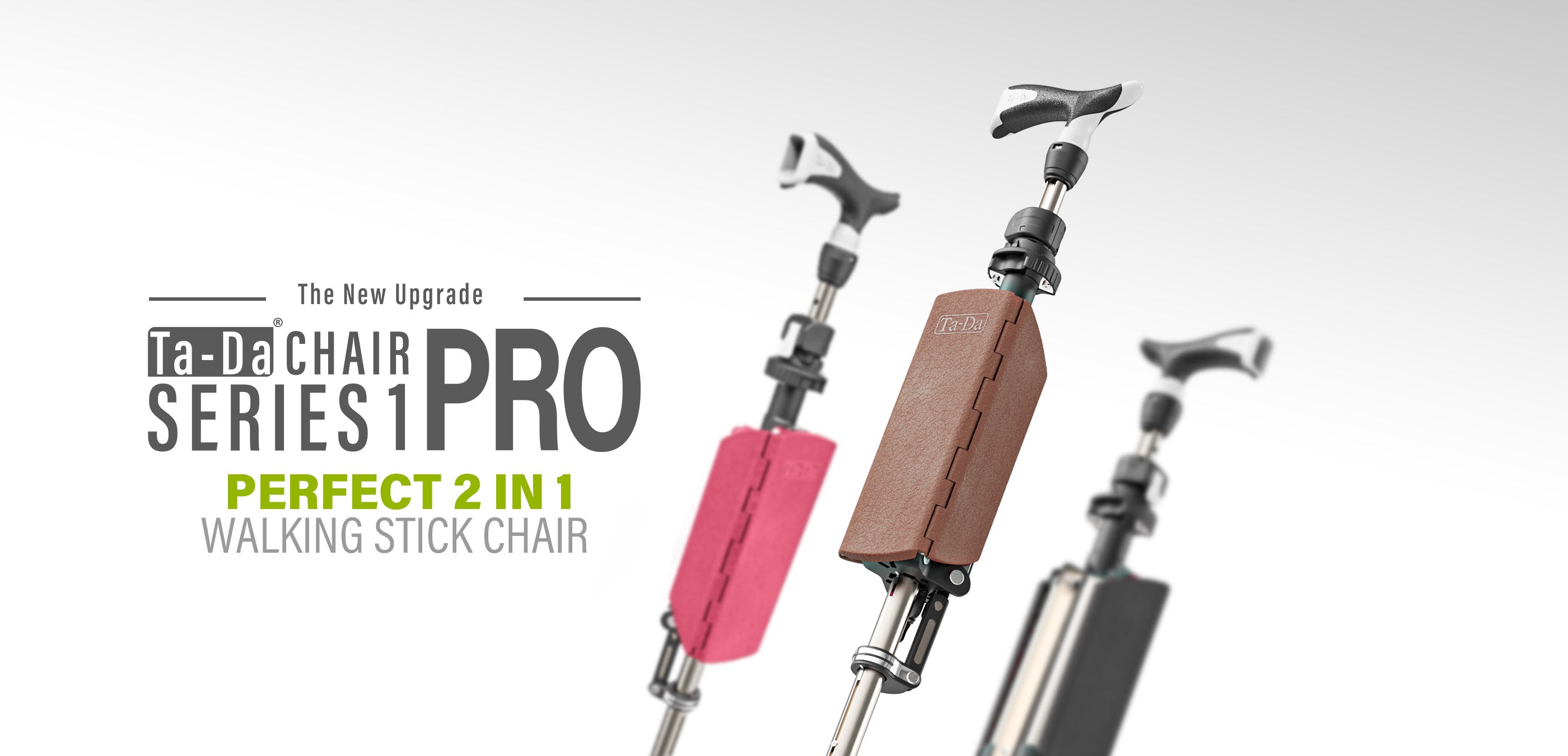 Ta-Da® chair is a versatile mobility aid that simultaneously provides users with a walking stick for support and a seat for resting. This design, which instantly converts a cane into a chair with only two fingers in just one second, just like a surprise from a magician pulling a rabbit from a hat and saying “Ta-Da”.